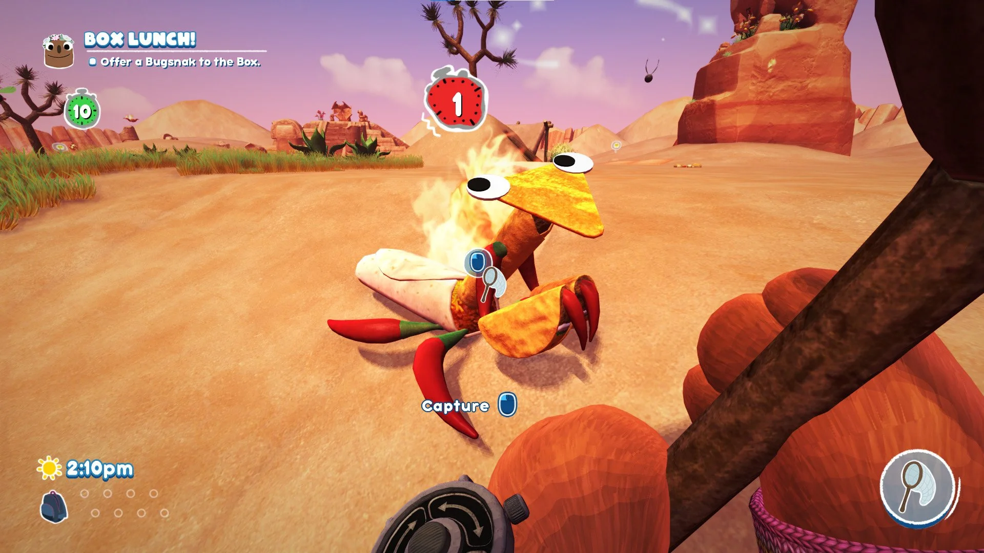 As for the gameplay, it took my little apprentice gamer a bit of time to learn the controls and mechanics of each one of the eight field tools available to him throughout the game. Luckily the developers introduce the mechanics at a good pace allowing him to get used to each one before adding the next. By the end of his first playthrough (which there have been many more since), he was combining traps, luring bugs, and collecting every one of the 111 different species. Each area of the game is presented as a puzzle playground where you search and scan the different bugs, learning their likes and dislikes, and through research and a bit of trial and error, you can Snax’Em All.