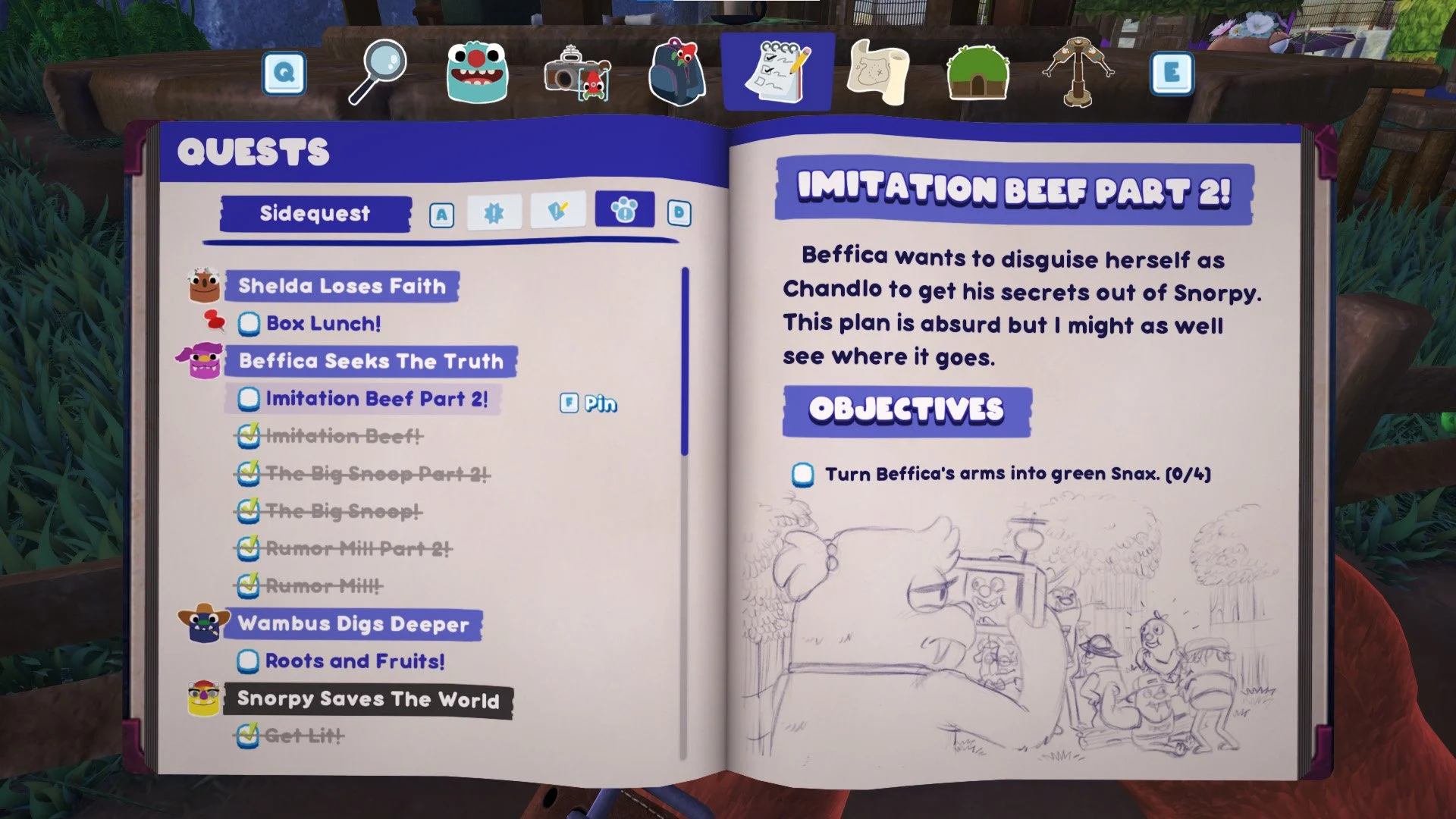 Extra Credit: This game consumed my child’s imagination and creativity for weeks and in between play sessions he spent his time creating new BugSnax of his very own. Going so far as to include even their likes, dislikes, and where they live. Here are some of my favorites: